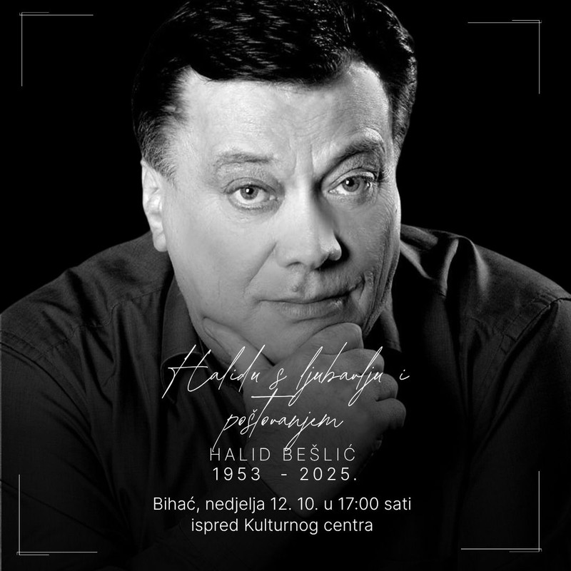 „Neki ljudi ne odu zaista. Ostanu živjeti u srcima, u pjesmama, na porodičnim okupljanjima… Tiho, uz iskrenu suzu i žal što nije potrajao, ispratimo dobru dušu Halidovu, uz pjesme s kojima je doticao svakoga od nas. Bihać s ljubavlju svom Halidu“, stoji u pozivu.