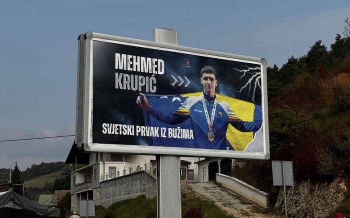 Mehmed Krupić je na Svjetskom prvenstvu u Taekwon-dou, održanom u Poreču od 7. do 11. oktobra 2025. godine, osvojio zlatnu medalju i titulu svjetskog prvaka, donoseći veliki ponos Bužimu, Unsko-sanskom kantonu i cijeloj Bosni i Hercegovini.