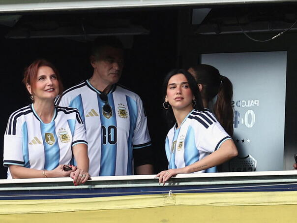 Pjevačica je izazvala oduševljenje navijača kada se pojavila na tribinama u opuštenom izdanju: obukla je klasični argentinski plavo-bijeli dres, a kombinaciju upotpunila velikim srebrnim naušnicama. Kosu je pustila da joj slobodno pada preko ramena.