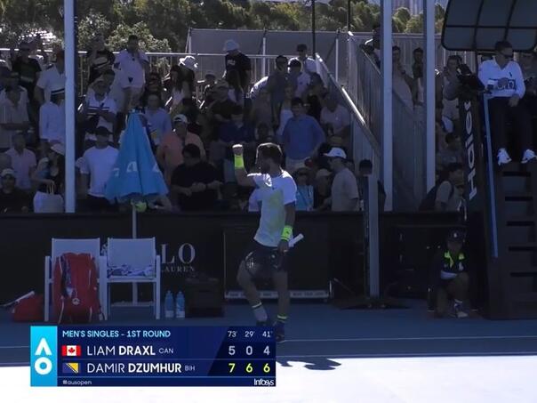 Džumhur je u meču prvog kola prikazao vrlo dominantnu igru i slavio rezultatom 3:0 u setovima, nakon dva sata i 13 minuta igre. Po setovima je bilo 7:5, 6:0 i 6:4, čime je bh. teniser osigurao plasman u drugo kolo turnira u Melburnu.
