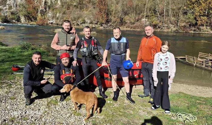 Podijeli Facebook Twitter LinkedIn Pinterest WhatsApp Email Heroji na obali Une: Spasili zarobljenog psa iz opasne situacije