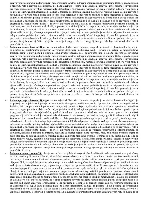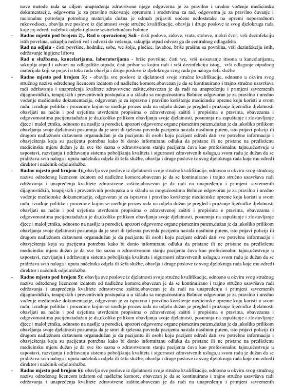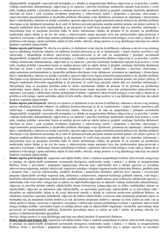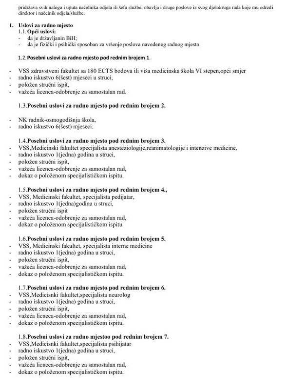 Na osnovu raspisanog javnog oglasa, bolnica traži sljedeće kadrove: