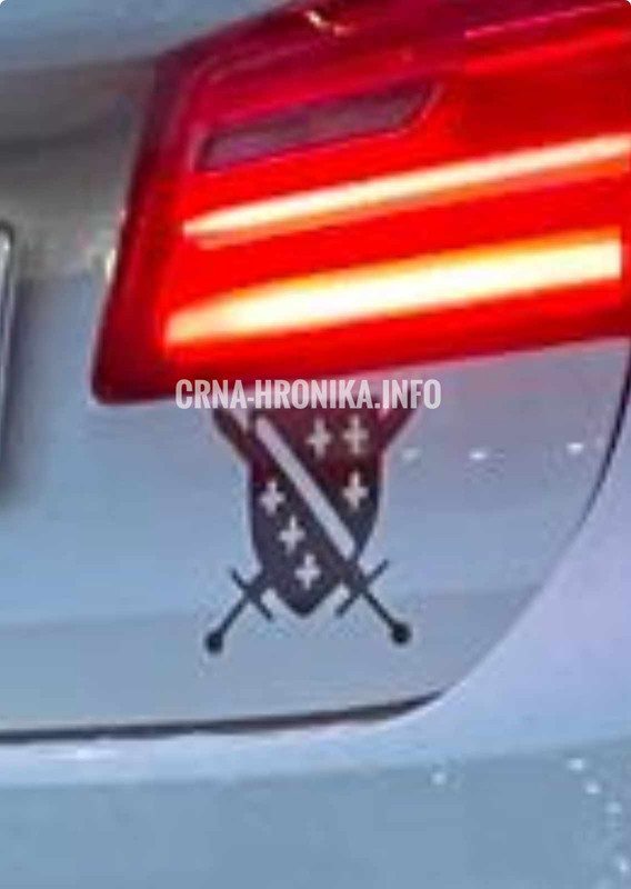 Na zadnjem dijelu vozila bio je zalijepljen simbol u obliku crne folije. Imam sliku od istog jutra, koja je snimljena u Hrvatskoj u 5:29 ujutru. Drugi simbol koji sam morao ukloniti je visio na retrovizeru unutra u vozilu i imao je plavu i zlatnu boju. Drugi simbol se također pohranjuje kao prilog.