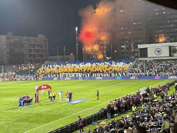 Jedna od mnogobrojnih scena sa Bilinog polja koje su odjeknule Evropom bila je i nesvakidašnja koreografija BH Fanaticosa, koja je organizovana ne samo na tribini, nego i na zgradi iza sjeverne tribine Bilinog polja.