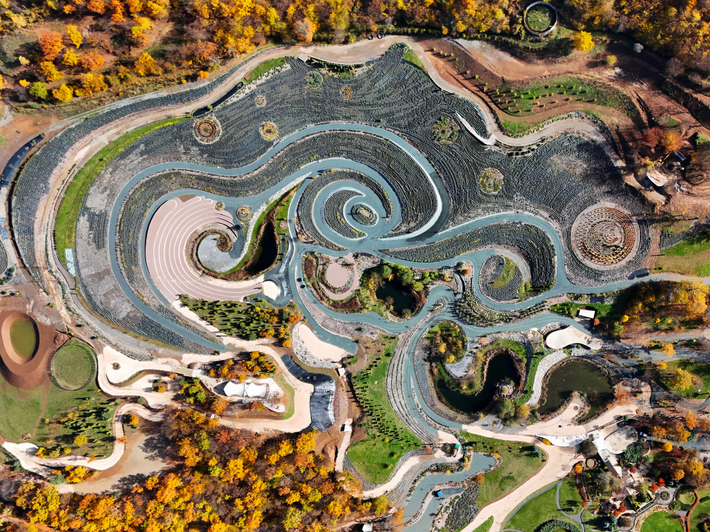 Posebno je zanimljivo da u cijelom projektu nije sječeno postojeće drveće, a staze i jezera su pažljivo uklopljeni u prirodni teren — što ovaj park čini primjerom održivog razvoja i ekološke svijesti.