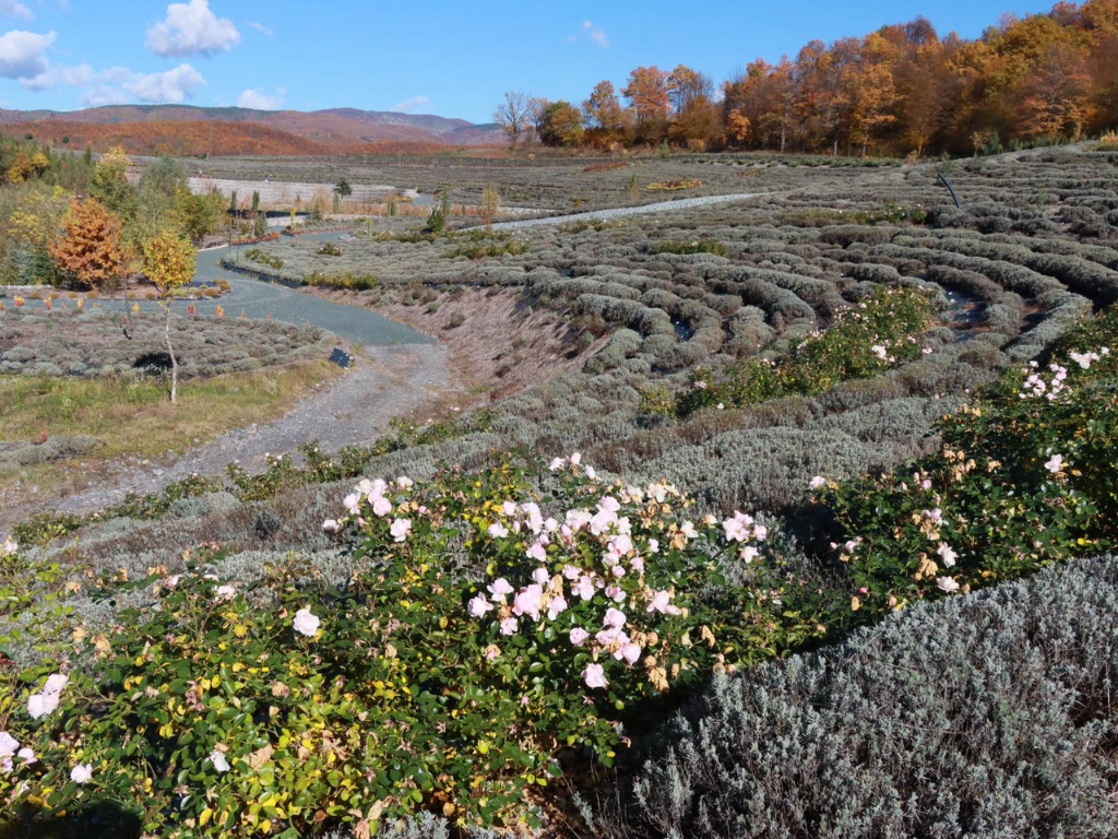 Na površini od 750.000 kvadratnih metara prostiru se polja lavande u šest nijansi, raspoređena u krugove i spirale, dok se između njih protežu šetnice, jezera i drveni objekti.