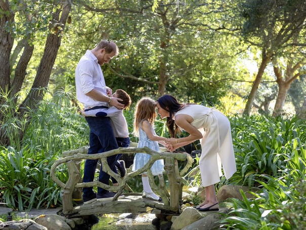 Na fotografiji objavljenoj na Instagramu, princ Archie grli svog oca, dok se Meghan saginje i drži za ruku princezu Lilibet. Porodica stoji na drvenom mostu u šumi, uz poruku – Sretni praznici! Od naše porodice za vašu, piše BBC.