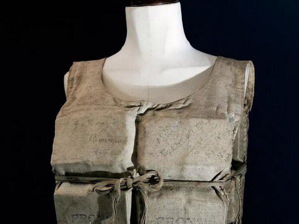 Ovaj prsluk pripadao je Lauri Mabel Francatelli, putnici prve klase na poznatom brodu, a na njemu se nalaze potpisi nje i drugih preživjelih iz istog čamca.