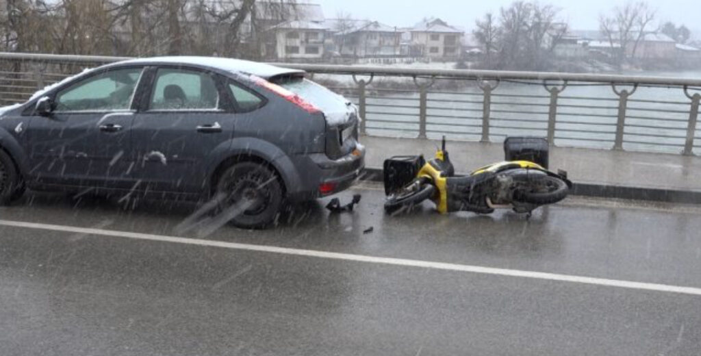 Naime, motocikl uslijed neprilagođene brzine uslovima na nesti nije stigao prikočiti, te se zabio u automobil.