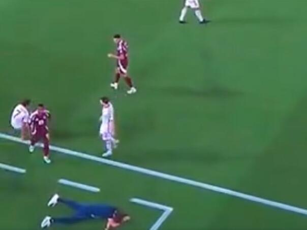 Tokom borbe za loptu, katarski vezista Asim Madibo nenamjerno je šutirao loptu koja je punom snagom pogodila selektora direktno u lice.