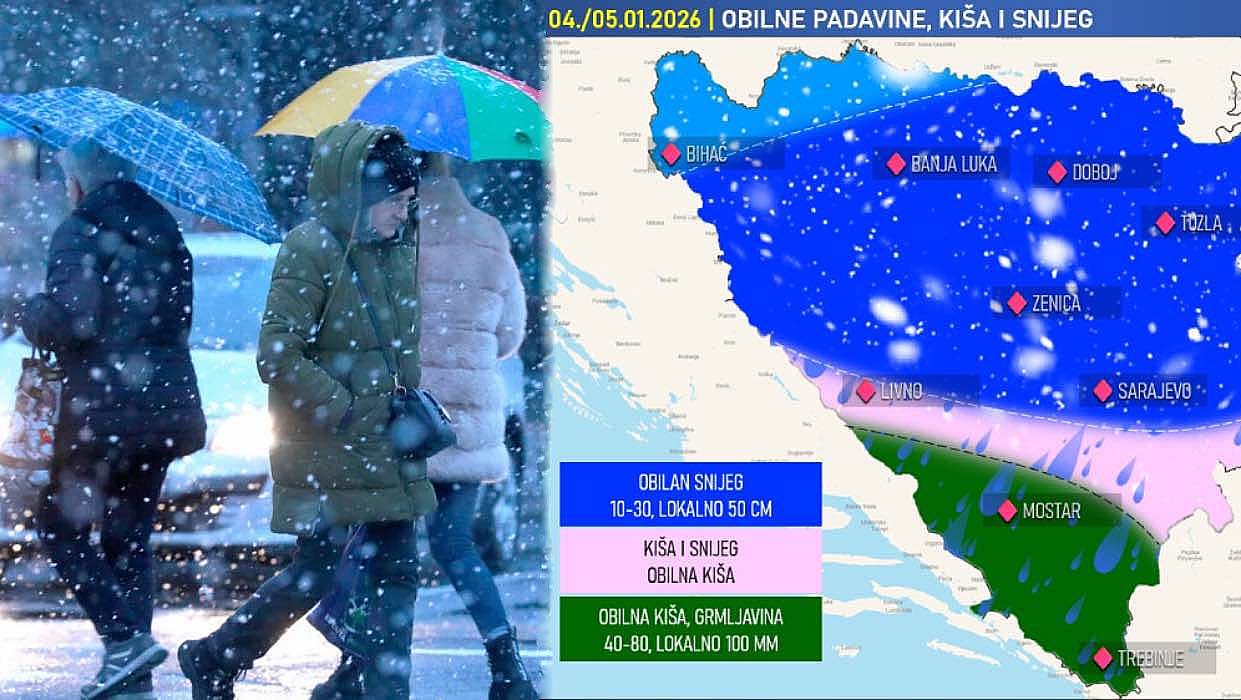 Bosnu i Hercegovinu u narednim danima očekuje izražena promjena vremenskih prilika, uz dolazak jačeg zimskog talasa koji će donijeti obilne padavine, prvenstveno snijeg u većem dijelu zemlje.