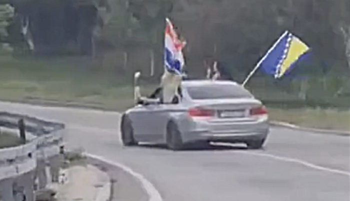 Na jednom od vozila u svatovskoj koloni vijorile su se zastave Bosne i Hercegovine i Hrvatske, što je izazvalo brojne pozitivne reakcije i komentare.