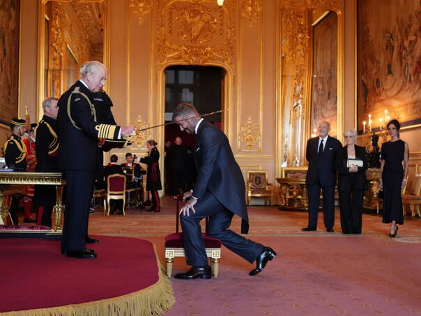 Na svečanoj ceremoniji održanoj u dvorcu Windsor, kralj Charles uručio je nekadašnjoj nogometnoj zvijezdi, Davidu Beckhamu, vitešku titulu za zasluge u sportu i humanitarnom radu.