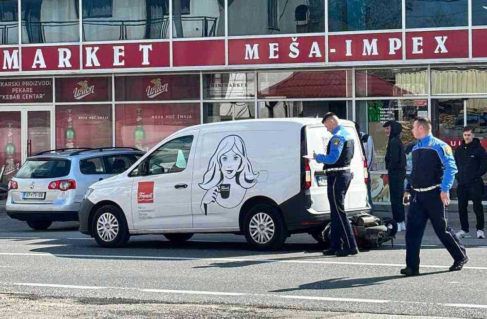 Nesreća se dogodila u blizini marketa Meša-Impex, gdje su se, prema dostupnim informacijama, sudarili dostavno vozilo i moped.