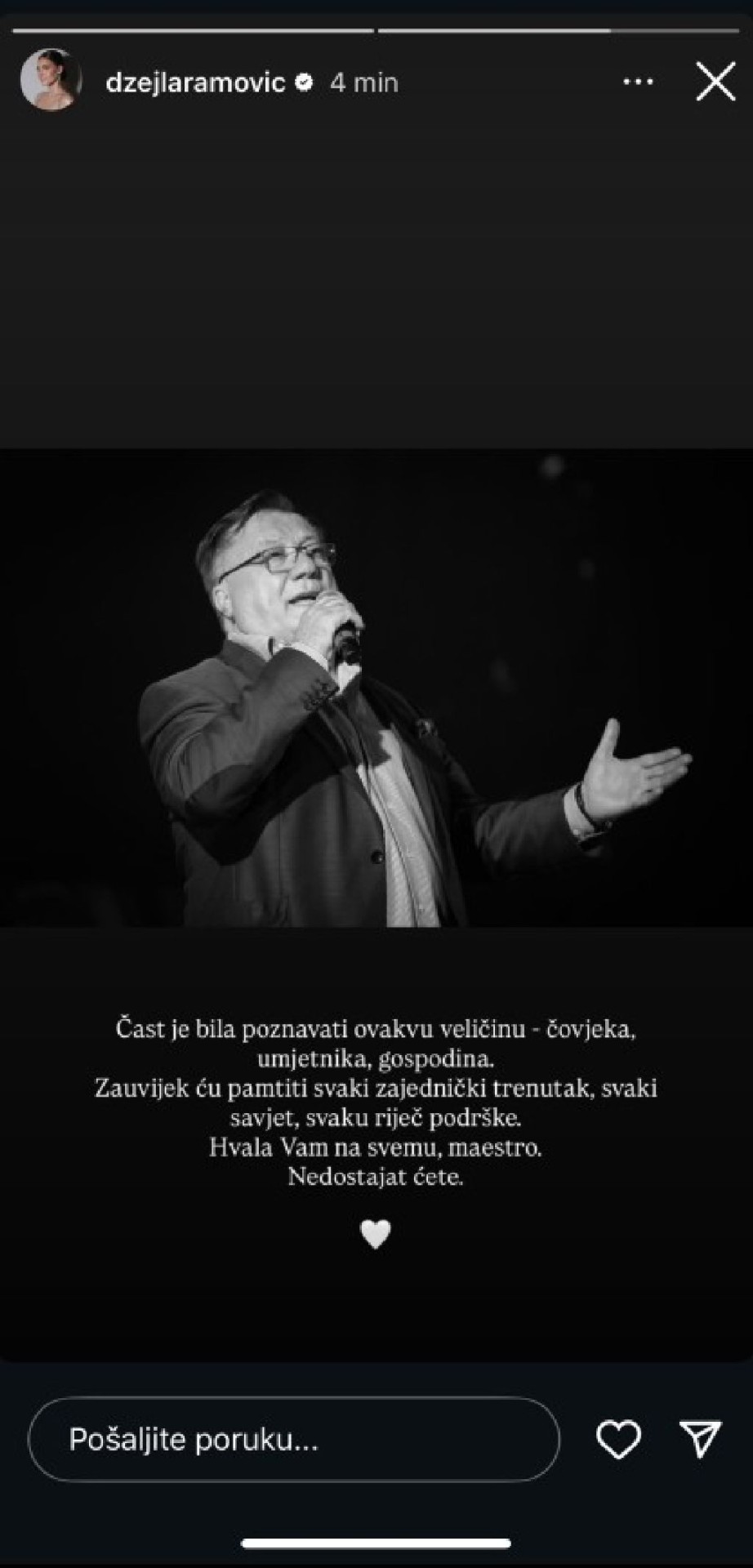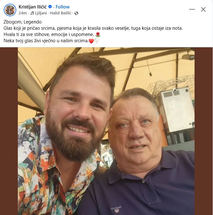 Tvoje naslijeđe će, druže, živjeti kroz pjesme koje dodiruju srca svih generacija, kroz emocije koje si prenosio na svoj jedinstven način i kroz sjećanja koja će zauvijek ostati sa svima koji su te voljeli.