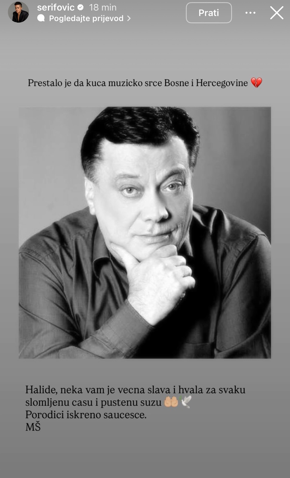 “Otišao je čovjek čiji je glas bio dio naših života. Halide, hvala ti za sve emocije, za pjesme uz koje smo rasli, voljeli i tugovali. Tvoj glas će zauvijek ostati dio naše duše. Počivaj u miru legendo, a porodici sabur”, napisao je Edin.